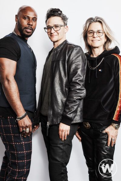 Full body studio portrait of Marquise, Sam and Amy in a group standing pose. Marquise