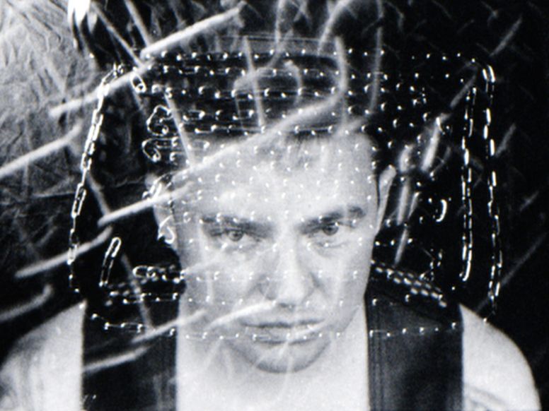 black-and-white photograph with a surreal and intense atmosphere created by eerie